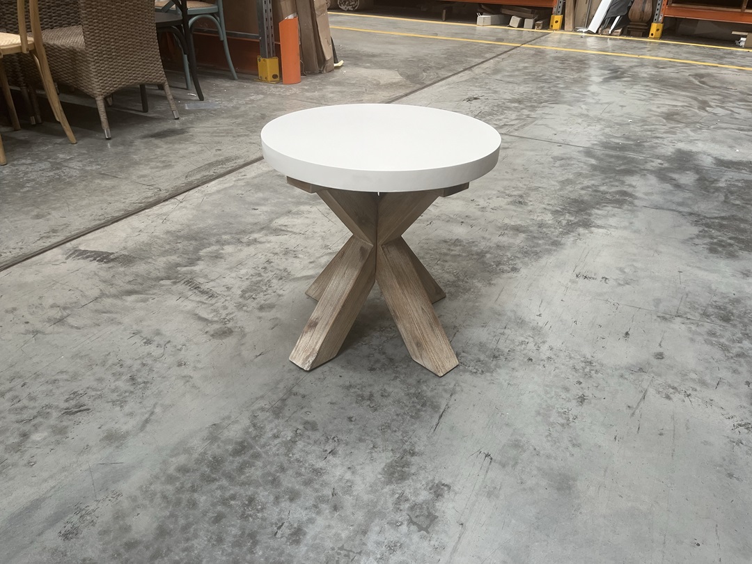 Concrete Top Round Lamp Table - White - Seconds Furniture